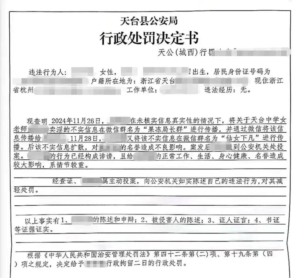 女教师在微信群传播同事不实传言被拘,起诉公安局被驳回发表时间:2026-01-19 16:11 浙江天台县一名中学女教师张女士(化姓)因在微信群聊中传播同校同事不实负面传言被行政拘留一案,迎来一审判决。法院认定当地公安局对其作出的行政处罚事实清楚、程序合法,驳回了张女士要求撤销处罚的起诉。目前,张女士已正式提出上诉。 该案缘起2024年11月的一则校园传言。当时,天台县某中学办公室内有教师讨论同校一名女教师的相关流言,其间提及了该教师的具体姓名。张女士的一位朋友从参与讨论的教师处获知此信息后,率先在三人闺蜜群中提及“有女教师卖淫”的传言,并通过微信私聊将传言中教师的名字告知了张女士。 ![]() 张女士在闺蜜群中发出两张照片 同日,张女士的另一位朋友通过微信私聊向其求证此事,张女士不仅转述了传言中涉事教师的教授科目、姓氏、年龄等关键特征,还在对方检索出涉事教师完整姓名及照片发送给自己后,回复了两张检索到的照片。后续,该朋友将相关聊天内容及照片转发至另外两个六人微信群,导致传言进一步扩散。 2024年12月,天台县公安局经查实,认定张女士在三人闺蜜群、三人家庭群中传播涉他人的诽谤性言论,其行为已构成诽谤,对其作出行政拘留2日的处罚。一同参与传播的两名朋友也被处以相应行政拘留。 ![]() 该案因“三人群聊八卦遭拘留”引发社会广泛关注,张女士认为自己仅是闲聊,并非传言捏造者,对处罚结果不服。 2025年5月,张女士将天台县公安局诉至法院,请求撤销上述行政处罚。张女士辩称,自己出于对朋友的信任,未预料到内容会被转发,且看到朋友转发的其他群聊记录时,误以为传言已广泛传播,并非故意散布;同时强调自己未捏造信息,不构成诽谤。 法院一审判决指出,张女士虽非传言的最初捏造者,但作为涉事教师的前同事,其传播的信息更易被他人采信。在朋友问询时,她未对未经核实的负面传言进行劝诫或阻止,反而主动转述关键特征并回复相关照片,主观上放任了他人名誉受损的结果。 法院明确,判断是否构成“散布”,不能仅以传播范围是否为“不特定多数人”为标准,还需综合考量信息性质、泄露可能性及实际传播后果。本案中,张女士应当预见私聊内容可能被进一步转发,且相关信息最终确实扩散,客观上对涉事教师的名誉造成损害,其行为已构成诽谤,故公安局的处罚决定并无不当。 对于一审判决结果,张女士表示无法接受,已正式提出上诉。其上诉理由包括自身未捏造信息、未实施公然散布行为、误信不实信息事出有因等,坚持认为自己在客观和主观层面均不构成诽谤。目前,二审相关程序正在推进中。 浙江天台县中学女教师张女士因在微信群聊中传播同校同事不实负面传言被行政拘留,一审法院驳回其撤销处罚的诉讼请求,张女士已提起上诉。该案因“三人群聊八卦遭拘留”突破公众对“私下闲聊”的认知边界,引发对诽谤行为认定、传播范围界定等法律问题的广泛讨论。结合《治安管理处罚法》《关于办理利用信息网络实施诽谤等刑事案件适用法律若干问题的解释》等规定,本案的法律逻辑与争议焦点可从以下维度厘清。 一、法律定性:治安违法层面的诽谤行为认定本案核心争议在于张女士的行为是否构成《治安管理处罚法》规定的诽谤行为。根据该法第四十二条第二项,“公然侮辱他人或者捏造事实诽谤他人的”,可处五日以下拘留或者五百元以下罚款。需明确的是,本案并非刑事诽谤案件,无需满足刑事层面“情节严重”的要件(如信息被点击五千次以上、造成被害人精神失常等),仅需符合治安违法的核心构成:主观上存在过错,客观上实施了捏造或传播捏造事实、损害他人名誉的行为。 从一审法院认定来看,张女士的行为完全契合上述要件。其一,客观上实施了传播诽谤信息的行为:作为涉事教师的前同事,其向朋友转述涉事教师的教授科目、年龄等关键特征,并发送照片,为传言提供了“精准指向”,使不实信息从模糊流言转化为针对特定人的恶意诋毁,且最终导致信息扩散至多个微信群,对被害人名誉造成实际损害。其二,主观上存在放任过错:张女士作为教育工作者,理应知晓不实负面传言的危害性,却未核实信息真伪,也未阻止传播,反而主动补充关键信息,对“私聊内容可能被转发、他人名誉可能受损”的结果持放任态度,符合治安违法中“过错”的认定标准,而非其辩称的“非故意散布”。 二、核心争议:“私下群聊”是否构成“散布”?张女士上诉的核心理由之一是“未实施公然散布行为”,这也是公众最易产生认知偏差的地方——多数人认为“三人群聊、私聊属于私人领域,不应认定为散布”。但一审法院的判决明确了一个重要司法导向:判断是否构成诽谤中的“散布”,不能仅以传播范围是否为“不特定多数人”为唯一标准,需结合信息性质、泄露可能性、传播后果综合判断。 从信息性质看,“女教师卖淫”属于严重贬损他人人格、名誉的恶性传言,与普通日常闲聊不同,此类信息具有极强的传播性和危害性,即便在小范围私密群聊中传播,也存在被进一步转发扩散的高度可能性。从传播后果看,张女士的信息传递行为直接为后续传言扩散提供了基础,最终导致信息从三人闺蜜群蔓延至多个六人微信群,形成了超出私人领域的传播效果,客观上实现了“散布”的实